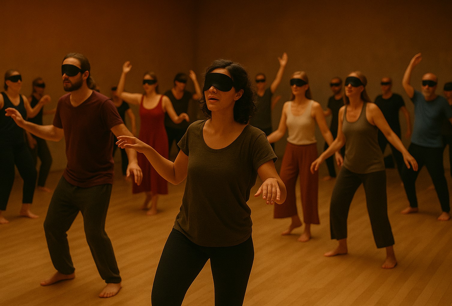 Wir schaffen einen sicheren und gehaltenen Raum und tanzen barfuß mit verbundenen Augen… jeder für sich und doch gemeinsam.